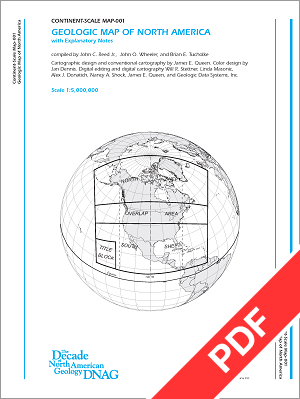 This Geologic Map of North America covers ~15% of Earth’s surface and differs from previous maps in several important respects: It is the first such map to depict the geology of the seafloor, the first compiled since the general acceptance of plate-tectonic theory, and the first since radiometric dates for plutonic and volcanic rocks became widely available. It also reflects enormous advances in conventional geologic mapping, advances that have led to a significant increase in the complexity of the map. The new map, printed in 11 colors, distinguishes more than 900 rock units, 110 of which are offshore. It depicts more than seven times the number of on-land units as are shown on its immediate predecessor, as well as many more faults and additional features such as volcanoes, calderas, impact structures, small bodies of unusual igneous rocks, and diapirs. When displayed at earth science institutions and libraries, this map is sure to impress viewers with the grand design of the continent and may inspire some to pursue the science of geology. The new Geologic Map of North America is also a “thinking map,” a source for new interpretations of the geology of North America, insights into the evolution of the continent, new exploration strategies for the discovery of mineral and energy resources, and the development of better ways to assess and mitigate environmental risks and geologic hazards. 3 sheets (North, South, and Legend), approximately 74 x 40 inches.