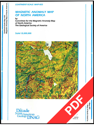 Compiled by the Committee for the Magnetic Anomaly Map of North America, this four sheet, 42” x 55", scale 1:5,000,000 map was created as part of the Geological Society of America’s Decade of North American Geology (DNAG) project.