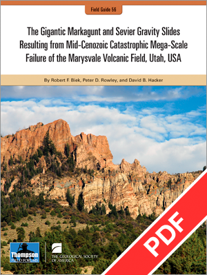 The Markagunt and Sevier gravity slides are gigantic landslides that resulted from gravitationally induced cata-strophic failure of the southern flank of the Oligocene to Miocene Marysvale volcanic field. Each is nearly 100 km long with runouts over the former land surface >35 km; together they span 7000 km2 and rank among Earth's largest terrestrial landslides. Basal cataclastic layers, injectites, pseudotachylyte, deformed clasts, and a variety of kinematic indicators demonstrate catastrophic emplacement, which was preceded by slow gravitational spreading of the volcanic field. This volume offers a history of their discovery, our current understanding of the gravity slides, and a guide to particularly instructive exposures for which the authors document their conclusions about the size, age, and significant structural features of these newly discovered features.Published: 12/04/2019