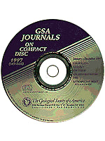 GSA Journals on Compact Disc is a CD-ROM publication of the Geological Society of America. This disc contains all 1997 articles from GSA Bulletin, Geology, GSA Today, all entries for the year in the GSA Data Repository, plus the Retrospective Electronic Index to GSA's journal articles published from 1972.