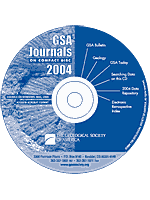 GSA Journals on Compact Disc is a CD-ROM publication of the Geological Society of America. This disc contains all 2004 articles from GSA Bulletin, Geology, GSA Today, all entries for the year in the GSA Data Repository, plus the Retrospective Electronic Index to GSA's journal articles published from 1972.