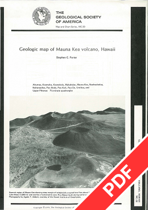One 51" x 33" sheet. From text: Mauna Kea (4,206 m), the highest of the five volcanoes that form the island of Hawaii, is the only Hawaiian volcano known to possess a record of Pleistocene glaciation. The interstratification of glacial sediments with volcanic rocks on the upper slopes of the mountain makes it possible to subdivide the volcanic pile into mappable rock-stratigraphic units. On the basis of their gross lithologic characteristics, these units fall into two major groups. The glacial and volcanic rocks of the younger group have been further subdivided into time-stratigraphic units that are controlled by 14C and K-Ar dates. The volcanic and glacial stratigraphy and the chronology, which have been discussed in detail elsewhere (Porter, 1972a, 1972b, 1973a, 1973b, 1979a, 1979b, 1979c; Porter and others, 1977), are summarized below and in Figure 1. Lava flows of Mauna Loa volcano that are included within the map area were assigned to the prehistoric and historic members of the Kau volcanic series by Stearns and Macdonald (1946), but these rocks were not part of this study, except for mapping their distribution and relative-age relationships.