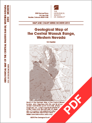 The Geologic Map of the Central Wassuk Range, Western Nevada, displays the effects of large magnitude Middle Miocene extension related to Basin and Range deformation. Extension across the map area was primarily accommodated by multiple generations of east-dipping normal faults, which repeat sections of the Tertiary volcanic and sedimentary stratigraphy. The extensional strain rate for this middle Miocene event is comparable to the highest rates of strain documented in the Basin and Range province.