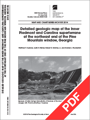 This digital geologic map is a 1:50,000-scale compilation of several 1:12,000- and 1:24,000-scale detailed mapping projects centered at the northeast end of the Pine Mountain window in central Georgia. It covers an area of ~2500 km2, and includes portions of the Tugaloo and Cat Square terranes of the Inner Piedmont, the Pine Mountain window (and terrane), and the western flank of the exotic Carolina superterrane (Charlotte terrane?). The nature of the relationships between these terranes, timing and kinematics of their bounding sutures, in addition to plutonism, high-grade metamorphism, and pervasive deformation throughout the map area provide vital data regarding the complex evolution of the southern Appalachian orogen from the Neoproterozoic breakup of Rodinia through the formation of Pangea and its eventual breakup in the Mesozoic. MCH105P, 1 digital color plate (approx. 41" by 74")