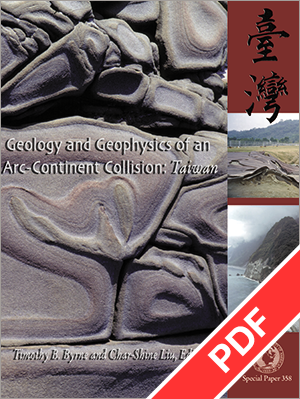 The Taiwan orogenic belt, which straddles the plate boundary between the Eurasia and Philippine Sea plates, represents one of Earth’s only active arc-continent collisions; as such, it provides a unique natural laboratory for understanding orogenic processes. The 14 papers that constitute this volume are organized around five research themes, followed by a synthetic interpretation of the subduction-collision transition in southern Taiwan. The five themes are: the role of extensional structures before and during thrusting in the fold and thrust; the relation between tectonically driven uplift, river terraces, fold-and-thrust development, and global positioning system data; deformation patterns and strain compatibility in the exposed, internal parts of the orogen; the geothermal structure and the role of synorogenic extension in the internal parts of the orogen; and the integration of geologic and geophysical data sets with finite element models to understand the three-dimensional evolution of the orogen, including the subduction-collision transition. A common theme of the papers is the authors’ desire to document the three-dimensional architecture of the orogen and to understand its spatial and temporal evolution using a variety of techniques. As a result, the papers provide new insights on the evolution of the orogenic belt and lay the groundwork for future studies.