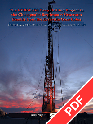 In 2005 and 2006, an international deep drilling project, conceived and organized under the auspices of the International Continental Scientific Drilling Program and the U.S. Geological Survey, continuously cored three boreholes to a total depth of 1.766 km near the center of the Chesapeake Bay impact structure in Northampton County, Virginia. This volume presents the initial results of geologic, petrographic, geochemical, paleontologic, geophysical, hydrologic, and microbiologic analyses of the Eyreville cores, which constitute a step forward in our understanding of the Chesapeake Bay impact structure and marine impact structures in general. The editors have organized this extensive volume into the following sections: geologic columns; borehole geophysical studies; regional geophysical studies; crystalline rocks, impactites, and impact models; sedimentary breccias; post-impact sediments; hydrologic and geothermal studies; and microbiologic studies. The multidisciplinary approach to the study of this impact structure should provide a valuable example for future scientific drilling investigations.