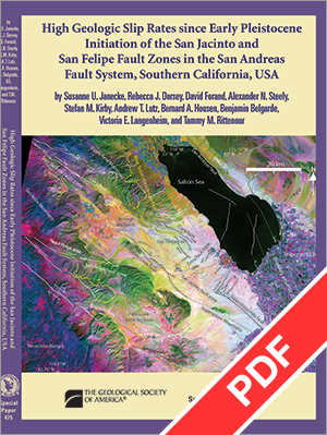 Full Title: High Geologic Slip Rates since Early Pleistocene Initiation of the San Jacinto and San Felipe Fault Zones in the San Andreas Fault System, Southern California, USA