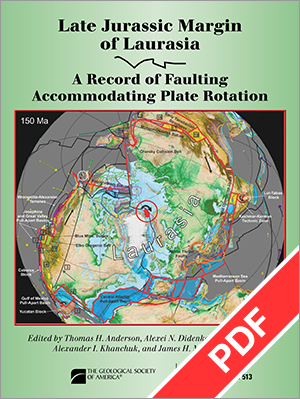 Fast-paced and complex extensional and contractional deformation, between 170 and 148 Ma, along the margin of Laurasia coincides with ocean-floor formation within basins, such as the central Atlantic, the Gulf of Mexico, the Great Valley of California, the Mediterranean Sea, and the southern Caspian Sea. Along the western margin of North America, numerous basins that formed in the Middle Jurassic and continued throughout the Late Jurassic, contemporaneous and co-genetic with igneous activity, are kinematically compatible with sinistral strike-slip fault movement, suggesting a transtensional origin. Comparable basins are postulated to have developed in Russia, Mongolia, China, and Iran. Domains of contractional deformation, attributed to transpression, such as the Blue Mountains (Oregon, USA), the Chersky collision belt (Siberia, Russia), and the early Yinshan fold-thrust belt (northern China), interrupt the belt of Late Jurassic basins. The tectonic evolution that is characterized by linkages among faults and fault-related structures along the margin of the Laurasian plate may be interpreted as recording plate rotation during the breakup of Pangea.